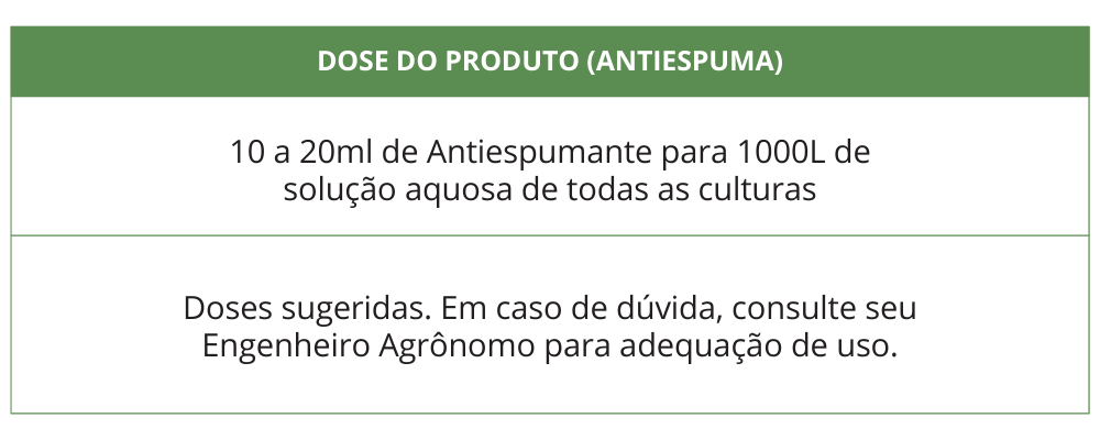 O ANTIESPUMANTE com seu efeito antiespuma é especialmente indicado para eliminar a formação de espuma nas aplicações em que há agitação, recirculação ou outro movimento da solução durante o uso ou recarregamento de tanques com líquidos e produtos químicos.