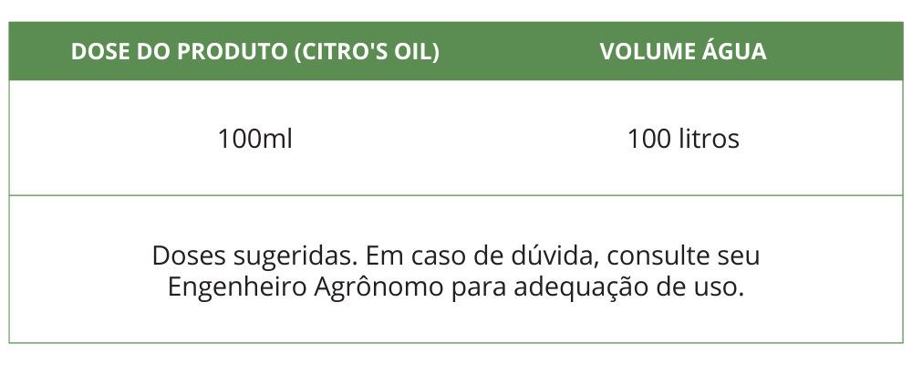 Citro’s Oil é um produto natural, com característica de adjuvante natural, umectante natural e surfactante natural.