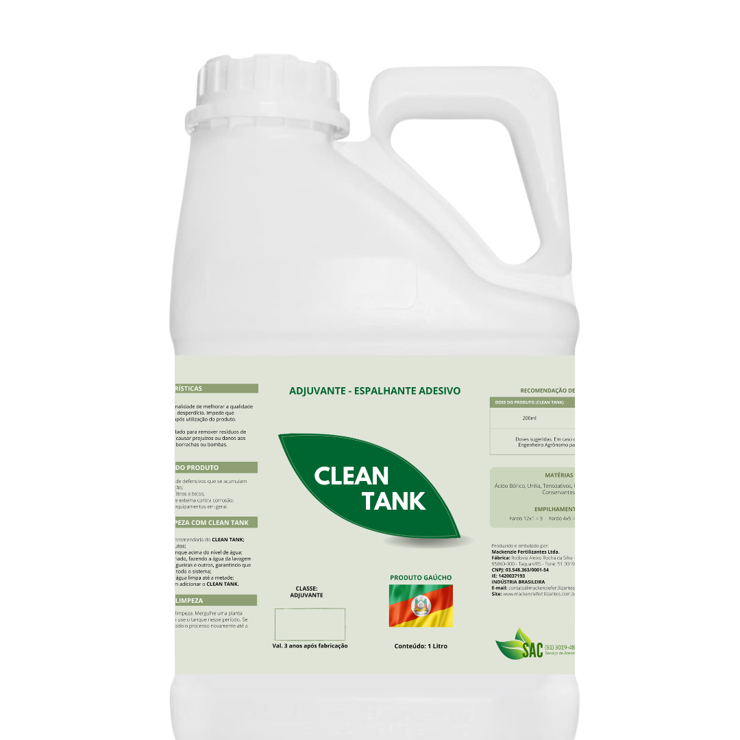 CLEAN TANK é um produto com finalidade de melhorar a qualidade de limpeza do tanque, reduzindo o desperdício. Impede que resíduos permaneçam no tanque após utilização do produto. CLEAN TANK é um produto formulado para remover resíduos de químicos contidos no tanque, sem causar prejuízos ou danos aos componentes metálicos, plásticos, borrachas ou bombas.